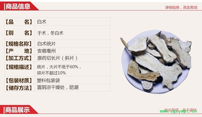 【满298元包邮】白术 统货 产地 安徽 亳白术 不限量多买更优惠