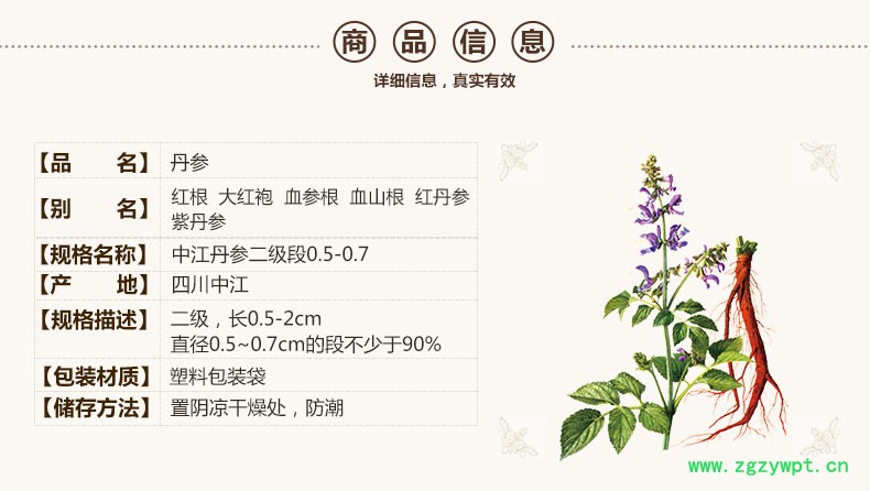 规格等级:中江丹参二级段0.5-0.7