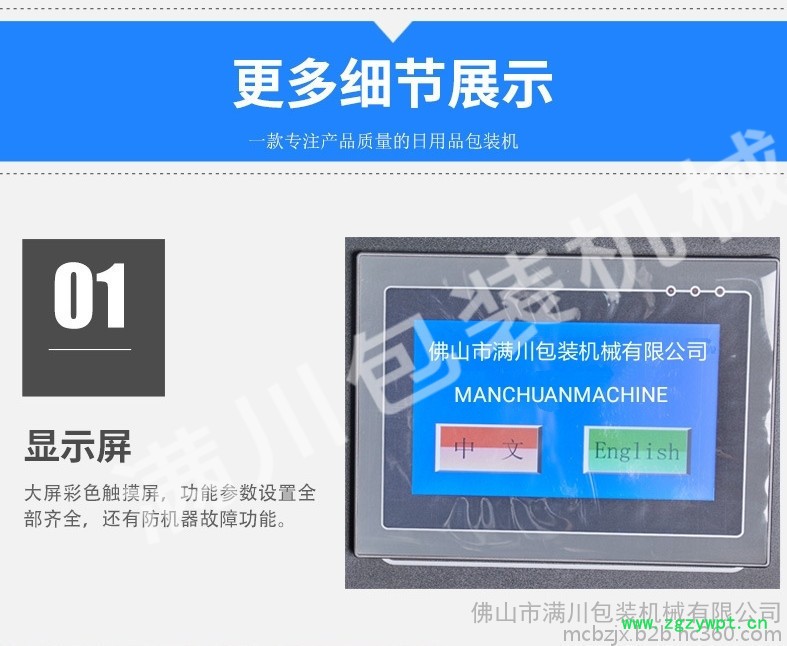 9、可储存数组包装产品的参数设置,更换包装产品时,直接切换即可正常生产,无需重新调整机械。更换包装产品,省时省膜。