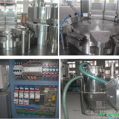 本机是将粉状、颗粒或小片等物料充填入空心胶囊内的设备,该产品采用孔塞式充填、间歇式运转、变频调速、适用于粉状或微丸状胶囊剂药品自动完成播囊、分囊、充填、(废囊剔除)锁囊、成品输出等工作,是我厂吸收国内外同类产品的优点结合国内实际情况,自行研制的先进充填机器在国内同等行业中处于前列地位。生产过程完全符合GMP规范。该机具有密码输入、参数设置、清零等功能。