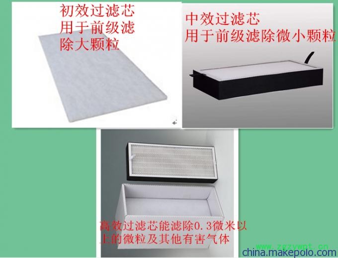 污染的空气→初效过滤→中效过滤→活性碳过滤→高效过滤→清洁的空气
