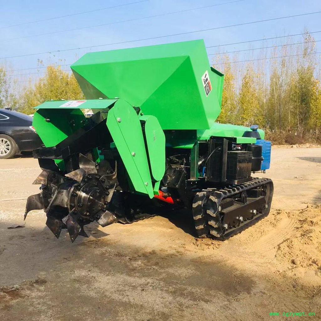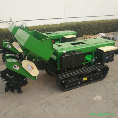 2F-30型自走式多功能开沟施肥机是我公司研发的发明产品,该产品应有各种9项,主要用于果园开沟施化肥和有机肥料、旋耕、喷药、除草、园区开沟排水作业。该机体积小(外形尺寸为:总长249厘米、、高75厘米),操作灵便,可原地转向。有六大功能:1、开沟施肥自动回填;2、单独开沟;3、单独回填;4、旋耕;5、除草6、风送喷药。开沟宽度为30厘米,开沟深度为0~40厘米可调,作业速度为每小时450米~1200米;施肥深度为0~35厘米可调,旋耕装置宽为105厘米可定制120厘米,除草90厘米;回填装置宽为155厘米;喷药装置总高度为130厘米可加高50厘米自由拆装,全套总重1.1吨。车辆行走速度约为每小时0.5~5公里,分高低6个前进档位和2个到退档位,在机器左侧手动操作。该机动力采用28马力单缸柴油机,发动机为中置,行走变速箱和传动变速箱分开,在丘陵地区开沟施肥作业时不用外加配重,箱内全部为齿轮传动,结实耐用。行走采用橡胶履带,行走直线性和通过性好,与地面接触面积大,不易打滑。开沟刀采用65锰钢自制,刀刃全部用耐磨焊条加强焊制,比普通开沟刀结实耐用至少10倍;采用蛟龙式强制排肥,下肥量可调,每米0.5~15斤,并且干的小块牛羊粪可通过施肥自动回填装置直接施肥,大块农家肥可通过单独开沟进行施肥;喷药采用风送式进口防滴漏陶瓷喷嘴和高效药泵,陶瓷片可更换,喷药幅宽5-10米,喷药高度5-8米,并且每个喷头可单独开关,大小可调方向可调,药箱为304不锈钢容积300升即600斤水。目前该机被广泛应用于各种果树、葡萄、核桃等经济作物的田间管理作用,堪称果园全能王,可节省大量人工!