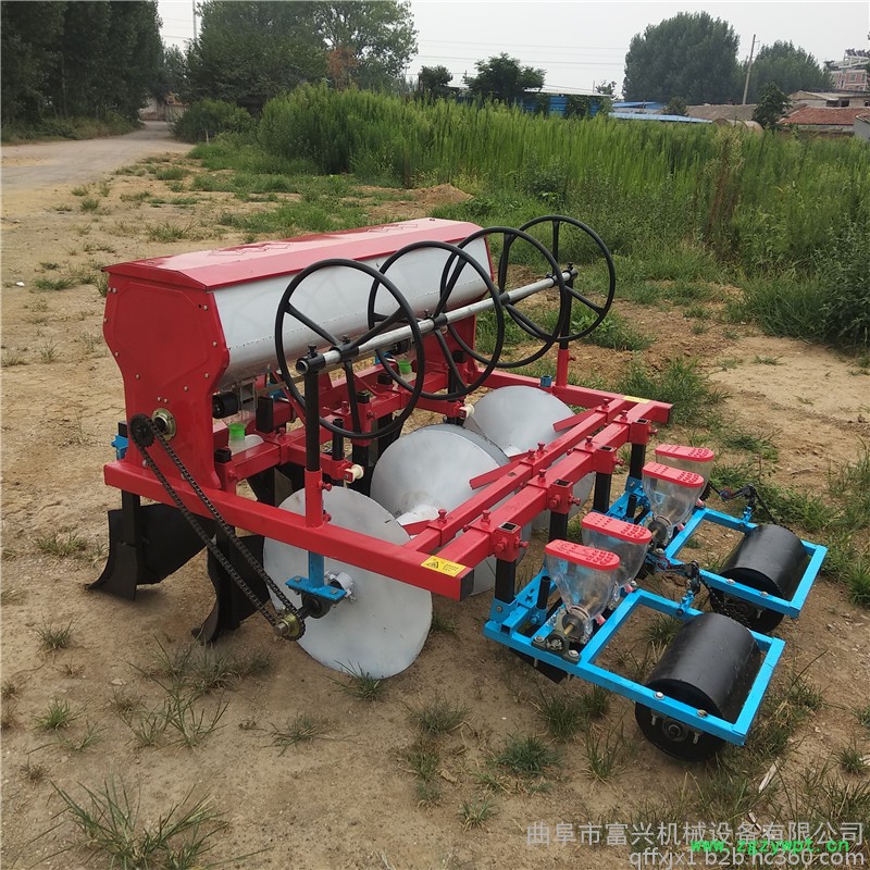 是在原来的产品基础上进一部完善,播种更准确,化肥种子同时播,适合土壤比较板结和麦茬播种,肥料种子大小多少都能进行调节,坚固耐用。播种机与手扶拖拉机牵引座连为一体,随手把能灵活升降,具有结构简单,造价低廉,操作方便等优点,是配套手扶拖拉机的一种小型播种机
