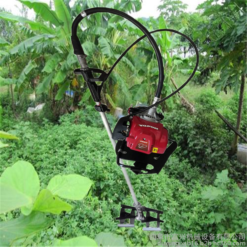 背负式除草机是根据丘陵,山区,地块小,高差大,又无机耕道而设计的。适合沙质地、经济物种植的松土、中耕和除草。背负式除草机广泛适用于田间耕作,开沟筑垄,塑料大棚、烟草、苗圃,果园,菜园的管理,茶叶等种植作业,背负式除草机具有重量轻,体积小,结构简单,操作方便,易于维修,油耗低,生产效率高等特点。背负式除草机可以将果树下面的硬土壤进行松化,便于施肥,使用此背负式除草机可以快速便捷的完成作业,替代劳累繁重的传统耕作方式。