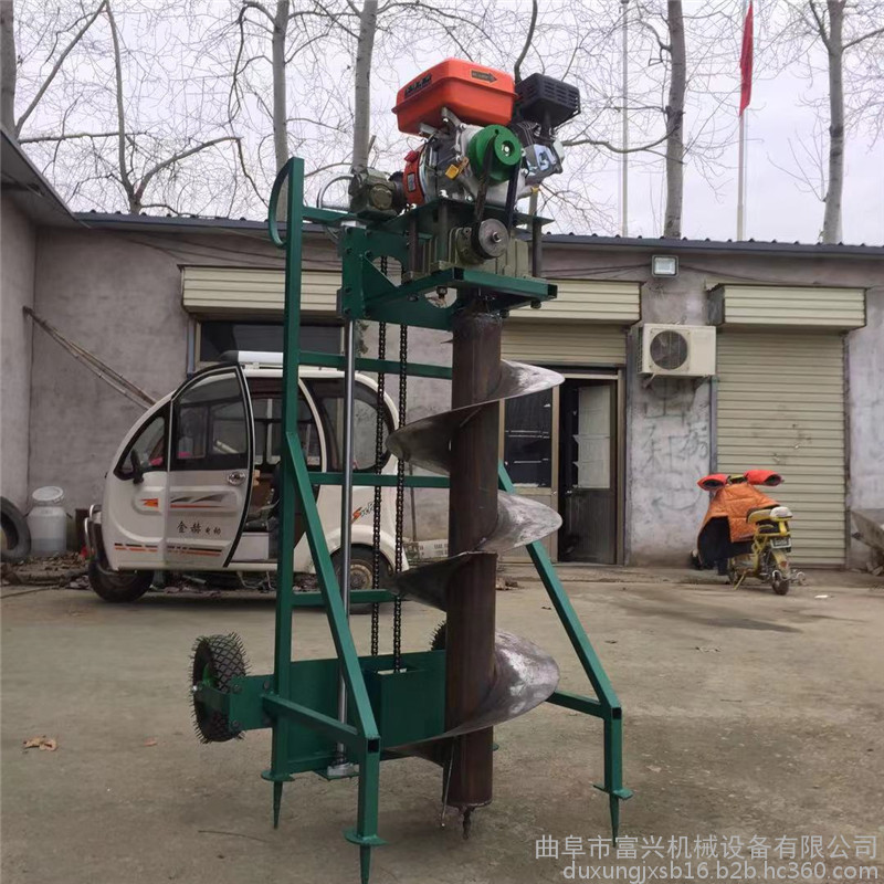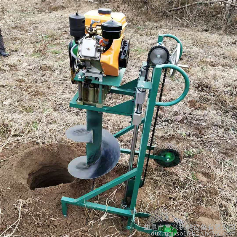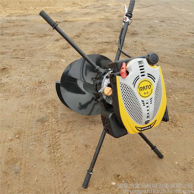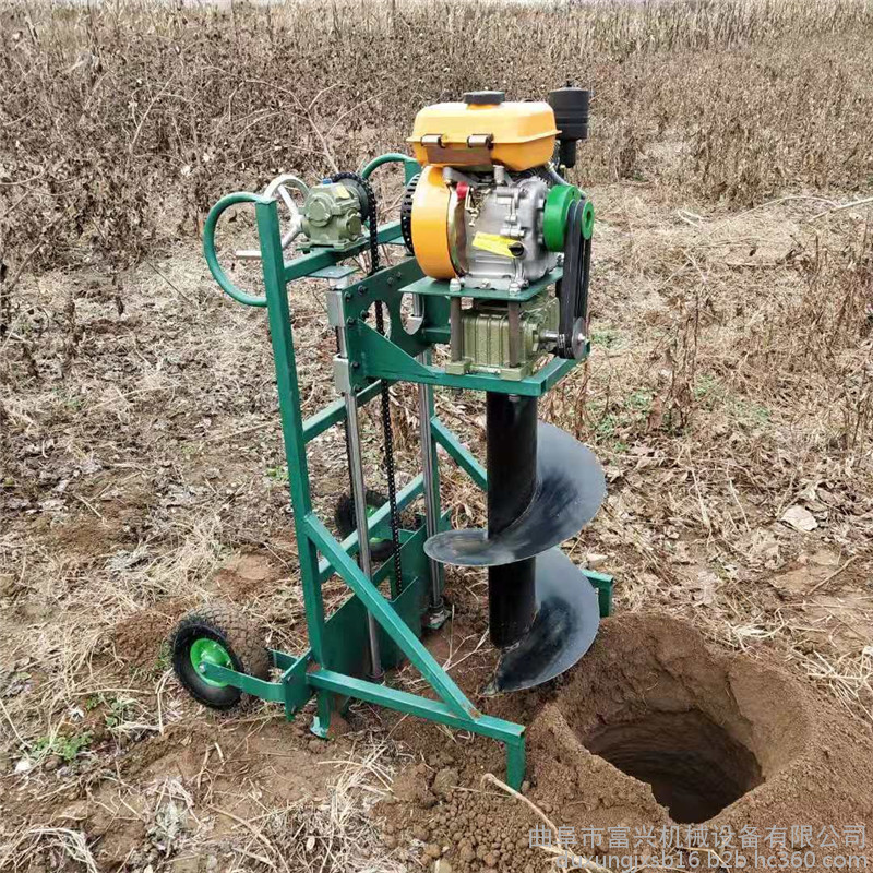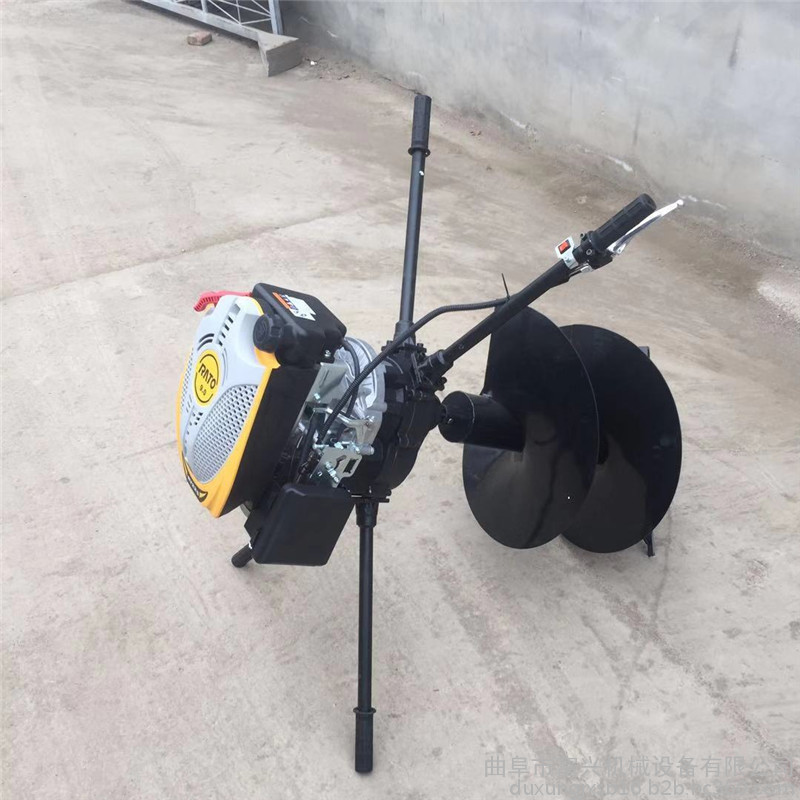 由小型通用汽油机,超越离合器,高减速比传动箱及特殊设计的钻具组成适合于<20度以下的坡地、沙地、硬质土地的植树造林或果树种植,道路两侧绿化植树等。苗木种植挖穴,畜牧围栏埋桩挖穴;葡萄胡椒种植埋桩挖穴;果树、林木施肥挖穴。挖坑直径:,200mm250 mm 300 mm 40mm。操作每小时不低于80个坑,按一天工作8小时计算,一天可以挖640个坑,是人工的30多倍。让人们从繁重的体力劳动解放出来,广泛应用于植树造林,栽种果林、篱笆、及秋季给果树施肥等。动力强劲有力,外形美观,操作舒适,劳动强度低,适合各种地形,效率高,便于携带及野外田地作业。