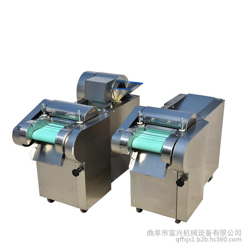 多功能型切菜机包含单切机的所有功能的同时,也可切圆形如土豆、萝卜等。 可将根、茎、叶等蔬菜加工成片、丝、丁、菱、曲线、花丁、花片等。切片装置用于硬菜(萝卜、土豆、水果、薯类)的切片,厚度在1-10毫米内自由调整;往复竖刀将刀成的菜片或软菜(韭菜、芹菜)切成直丝或段、曲线丝、方丁(或形刀)输送带每次移动距离1-20毫米自由调整。所调整量即为丝段的宽度;应注意被切菜直径较粗时(大于30毫米)出片效果才好,便于切丁,直径小时制的片或丁将会杂乱。被切菜加工面平整光滑、规则,组织完好,保持手工切制的效果。具有外形美观,操作简单,使用维修方便等特点。可切香葱、香菜、菠菜、韭菜、韭蒜、芹菜、豆角等茎杆茎叶物料段形,也可以切海带、荷叶、烟草成丝状,宽度自由调节。