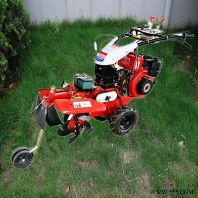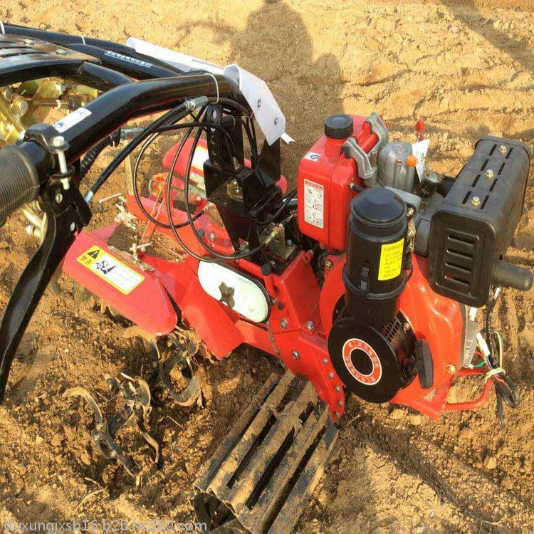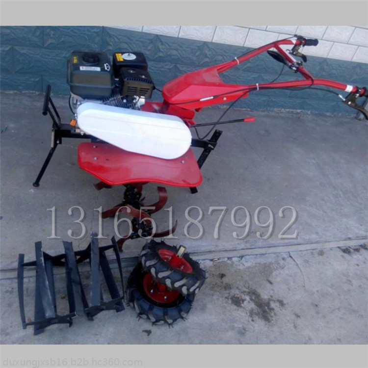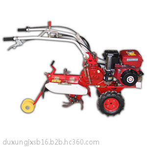 本机器包括机架、可调高低扶手,机架上设有(风冷或水冷)柴油机或汽油机、机架和扶手上设置有变速箱,变速箱的输出轴上设置有能够沿轴移动的驱动轮或链轨.传动方式主要有:全齿轮传动、皮带传动、链条传动三种传动方式.该机具有重量轻,油耗低、相对功率大,结构紧凑、机动性强、操纵轻便灵活的特点。可爬坡、越埂、阶梯性强。广泛适用于平原、山区、丘陵的旱地、水田、果园、菜地、烟地的深旋耕、浅旋耕、犁耕。配上相应机具可进行旱地旋耕、水田旋耕、抽水、开沟、喷淋、喷药除草碎土等作业,还可牵引拖车进行短途运输,是大中型农机无法媲美的多功能田园管理机,工作稳定可靠、使用寿命长、维修方便等特点。是进入农民家庭田园管理机 自动差速器的田园管理机,可以360度自由转弯,在田间可随意控制方向,极大的方便操作,此外该机采用整体铸造变速箱体,结实耐用,采用干式摩擦离合器,安全可靠。是农民朋友的好帮手