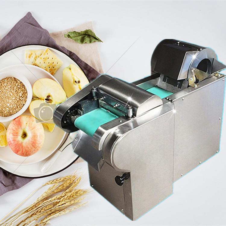 多功能型切菜机包含单切机的所有功能的同时,也可切圆形如土豆、萝卜等。 可将根、茎、叶等蔬菜加工成片、丝、丁、菱、曲线、花丁、花片等。切片装置用于硬菜(萝卜、土豆、水果、薯类)的切片,厚度在1-10毫米内自由调整;往复竖刀将刀成的菜片或软菜(韭菜、芹菜)切成直丝或段、曲线丝、方丁(或形刀)输送带每次移动距离1-20毫米自由调整。所调整量即为丝段的宽度;应注意被切菜直径较粗时(大于30毫米)出片效果才好,便于切丁,直径小时制的片或丁将会杂乱。被切菜加工面平整光滑、规则,组织完好,保持手工切制的效果。具有外形美观,操作简单,使用维修方便等特点。可切香葱、香菜、菠菜、韭菜、韭蒜、芹菜、豆角等茎杆茎叶物料段形,也可以切海带、荷叶、烟草成丝状,宽度自由调节。