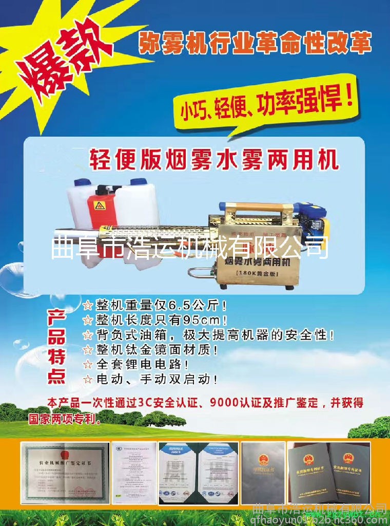 山东曲阜浩运机械工厂批发麦田除虫打药机 雾化颗粒细菜园果园烟雾弥雾机 多型号打药设备