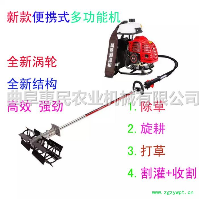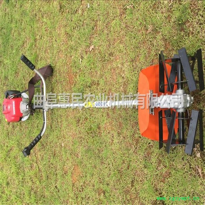 背负式小型微耕机背负式锄草机果园除草松土机又称除草机、剪草机、草坪修剪机等。除草机是一种用于修剪草坪、植被等的机械工具,它是由刀盘、发动机、行走轮、行走机构、刀片、扶手、控制部分组成。刀盘装在行走轮上,刀盘上装有发动机,发动机的输出轴上装有刀片,刀片利用发动机的高速旋转在速度方面提高很多,节省了除草工人的作业时间,减少了大量的人力资源。
