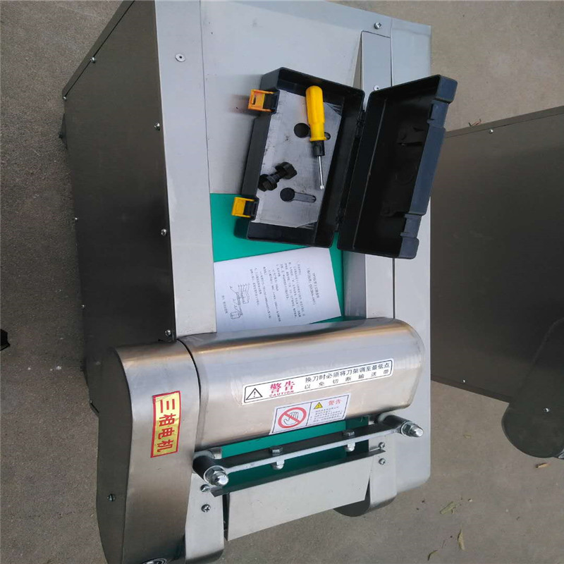 使用操作1、工作前先试切,观察所切蔬菜规格与要求规格是否一致,否则应调节切片厚度或切菜长度,符合要求后进行正常工作。