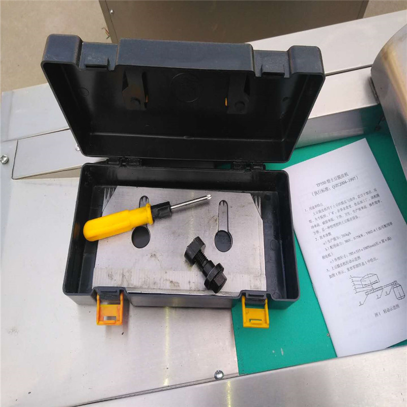 三角带的张紧:疏导三角带张紧,可调整机器后方调整螺杆,顺时针旋转即可张紧;切片机构张紧可调整电机板螺母达到张紧的目的。