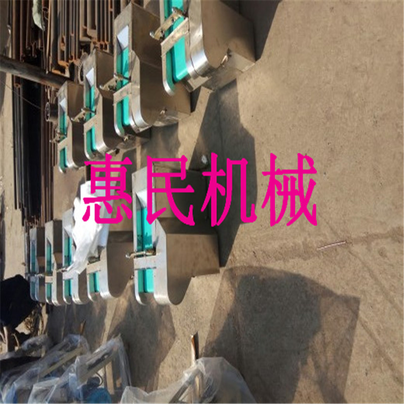 先转动可调偏心轮,使刀架行至下死点后,再使刀架向上抬起1/2毫米,使竖刀与输送带接触后,紧固螺母把竖刀紧固在刀架上。说明:刀架抬起高度可根据所切蔬菜自行掌握。如果高架抬起高度小,蔬菜有可能连刀,如果高架抬起高度过大,有可能切坏输送带。