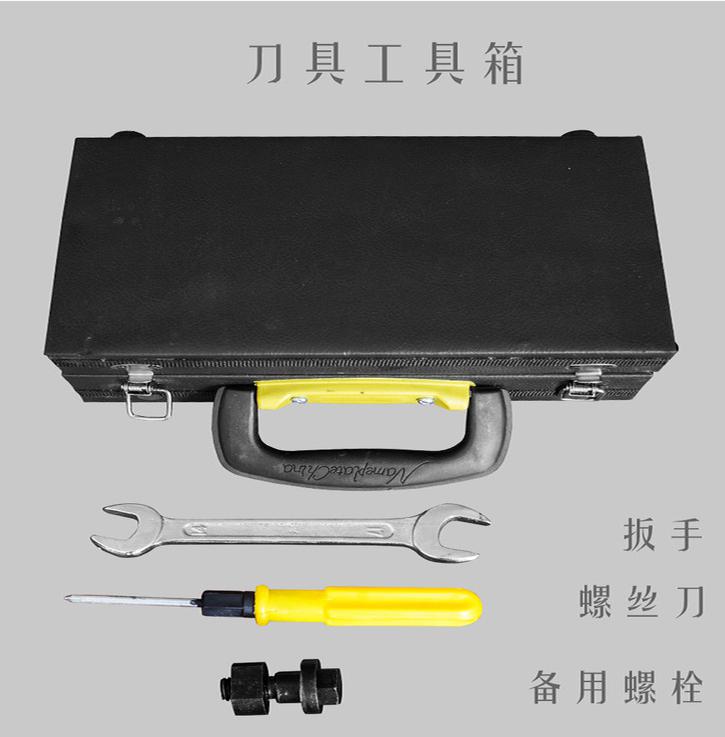 先转动可调偏心轮,使刀架行至下死点后,再使刀架向上抬起1/2毫米,使竖刀与输送带接触后,紧固螺母把竖刀紧固在刀架上。说明:刀架抬起高度可根据所切蔬菜自行掌握。如果高架抬起高度小,蔬菜有可能连刀,如果高架抬起高度过大,有可能切坏输送带。