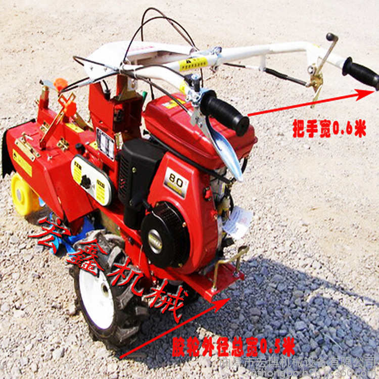 田园管理机宽0.38米 高0.7米 长1.5米,轮距可调, 机器重100kg--150kg,可以实现大型机械无法进入的小块土地、大棚、茶园、丘陵、山地等不同的地形和土质进行作业。可根据各种农作物的需要配不同宽度的刀,非常适合各种小地块操作,更适合大地块使用。