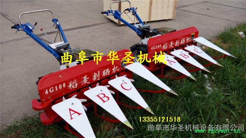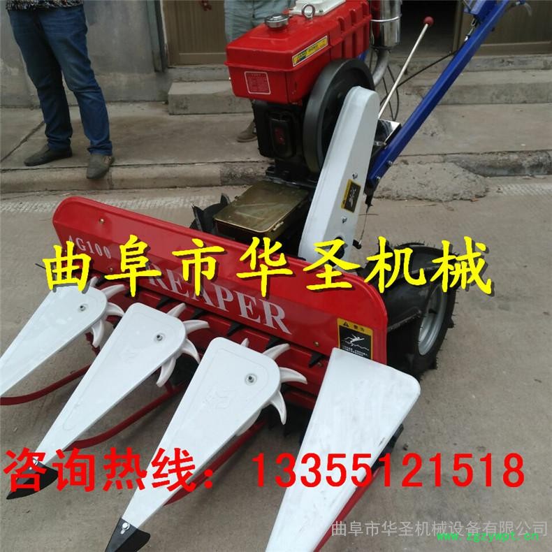 曲阜市华圣机械设备有限公司过几年的研究试制成功开发了4HG系列稻麦微型割晒机,该机具有结构简单、合理、操作维修方便、体积小、重量轻、能耗低、性能稳定、可靠性好、适用性强等特点。特别适用于小地块、山地、丘陵及需要秸杆利用地区的水稻、三麦以及大豆、芦苇的收割作业。解决了几千年来农民面朝黄土背朝天,一身汗水、一身泥的苦处,也是农民挣钱致富的好机器。(工作20天收回全部投资)