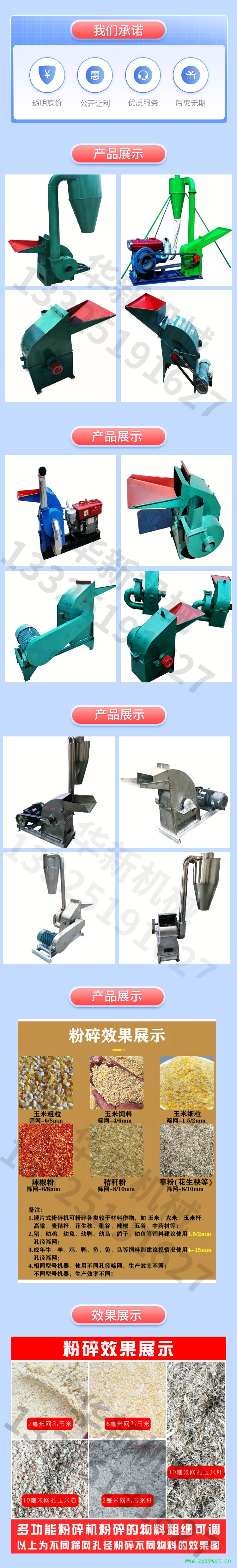 华新牌锤片式粉碎机可粉碎玉米、大豆、豆饼、秸秆、稻草、花生秧、地瓜秧等.本机内部为锤片式粉碎仓,可将秸秆、稻草,大豆秧加工成粗饲料,也可将粮食类加工成精饲料,可把粉碎后的原料加工成颗粒饲料供牲畜,家禽食用。本机还可跟据用户粉碎物料不同更换不同粉碎筛网,并根据要求选装自动卸料装置,人工只需在沙克龙出料口处放上集料带,物料就可经沙克龙出料,既方便又省力。工作时装料袋的一端紧扎在出料口上,加工好的原料可以随时从料袋另一端的开口倒入面袋。更换粮食品种时,不必停机,可以继续工作。当专门用于粉碎饲料时,可以不使用出料袋,而砌成地坑或其他方式。