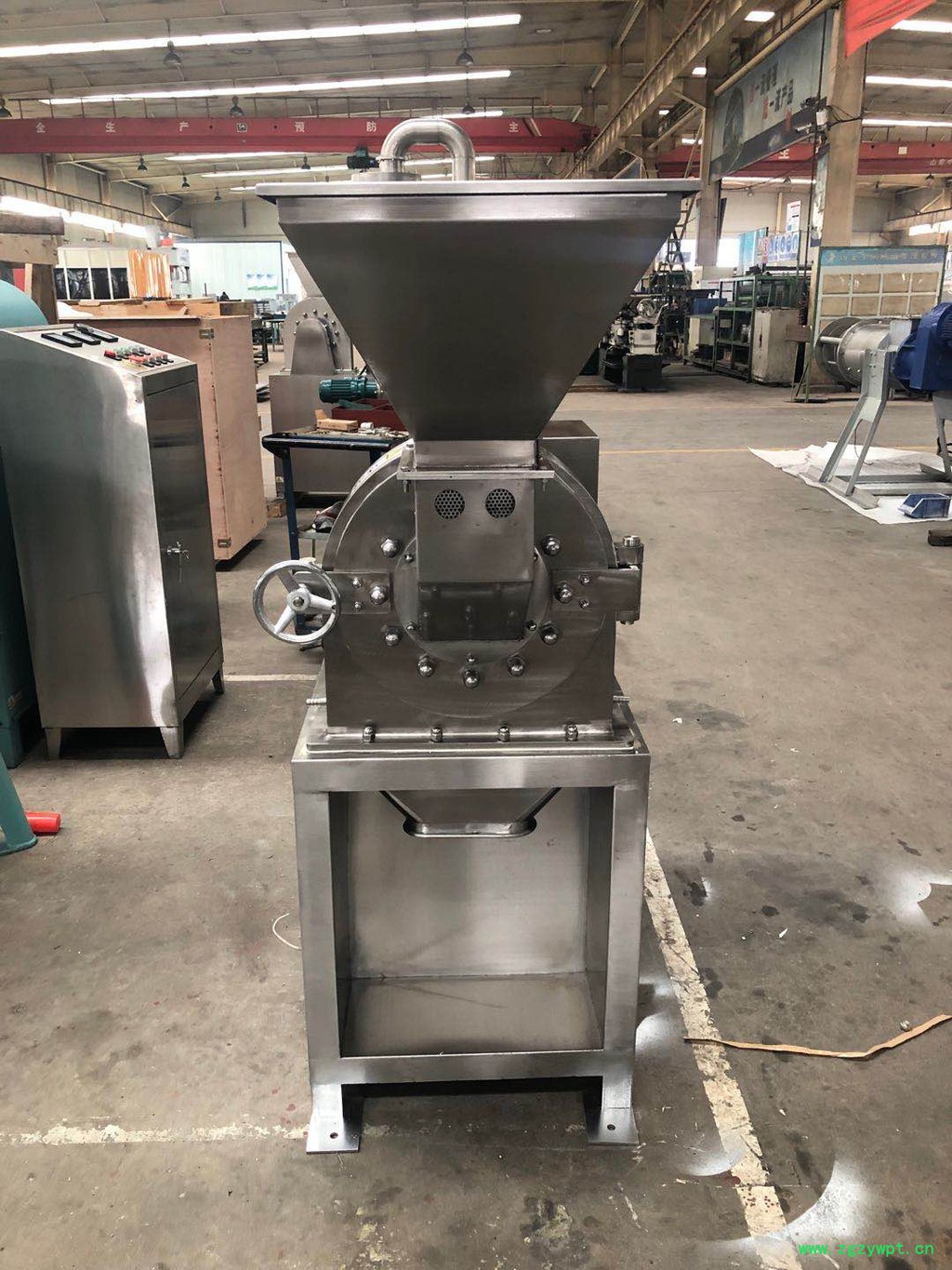 不锈钢粉碎机的特点: 1、能耗低。2、设备结构紧凑,占地面积小。3、粉碎箱内存料少,易于拆洗,更换品种方便。4、粉碎粒度范围广,成品粒径在10-120目范围可调;机型多,产量10~2000kg/h机型可选。5、可干湿两用;6、可根据物料需求配水冷、风冷装置。常用的水冷装置**是在粉碎腔的前壁和后壁分别加装一个密封的水夹,使流动的自来水或者井水不断地流进后壁水夹,再流进前壁水夹,再由前壁水夹回流入后壁,由后壁的出水口流出。水冷装置的目的**是降低粉碎腔的温度。