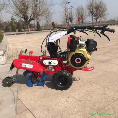 本机器包括机架、可调高低扶手,机架上设有(风冷或水冷)柴油机或汽油机、机架和扶手上设置有变速箱,变速箱的输出轴上设置有能够沿轴移动的驱动轮或链轨.传动方式主要有:全齿轮传动、皮带传动、链条传动三种传动方式.该机具有重量轻,油耗低、相对功率大,结构紧凑、机动性强、操纵轻便灵活的特点。可爬坡、越埂、阶梯性强。广泛适用于平原、山区、丘陵的旱地、水田、果园、菜地、烟地的深旋耕、浅旋耕、犁耕。配上相应机具可进行旱地旋耕、水田旋耕、抽水、开沟、喷淋、喷药除草碎土等作业,还可牵引拖车进行短途运输,是大中型农机无法**的多功能田园管理机,工作稳定可靠、使用寿命长、维修方便等特点。是进入农民家庭**的田园管理机。
