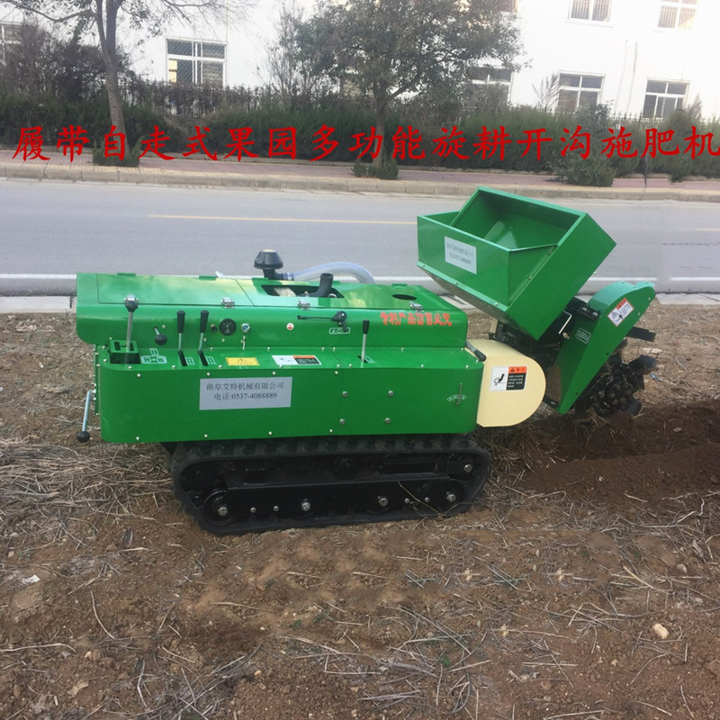 橡胶履带自走式低矮果园保姆;果园穿梭王;开沟、施肥、回填、旋耕、除草 多功能机;专业化制造**。单独开沟施土杂肥、更换回填和旋耕装置后可进行回填和旋耕作业;该机体积小,个头低,操作灵便,可原地转向,适用于果园葡萄、果树、枸杞、蓝莓等经济作物的开沟施肥松土除草等作业。小型果园开沟施肥机 自走式开沟施肥机 开沟机厂家
