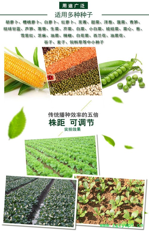种子(株距、株距、落种深度、落种数)可调控;开沟,落种,覆土,阵压 一步完成;可以条播,可以点播。