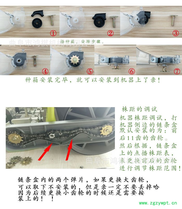 ??9)随机配套不同型号的齿轮以便调节株距