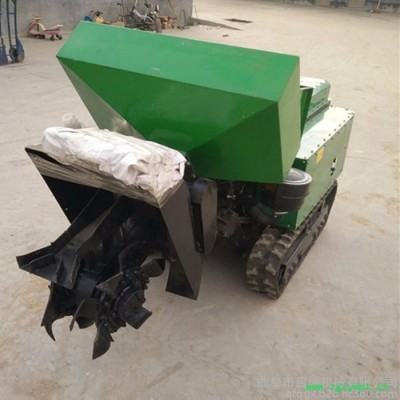 自走式多功能施肥机是我公司研发的发明产品,该产品应有各 种9项,有以上六大功能,主要用于果园开沟施化肥和有机肥料、 旋耕、喷药、除草、园区开沟排水作业。 该机体积小,操作灵便,可原地转向,分离低6个前进档位和2个到退档 位,在机器左侧手动操作;动力采用28马力时风单缸水冷柴油机,箱内 全部为齿轮传动,结实耐用。行走采用橡胶履带,行走直线性和通过性 好,不易打滑。开沟刀采用65锰钢自至,刀刃全部用耐磨焊条加强焊 制;施肥采用蛟龙式强制排肥,下肥量可调,每米0~15斤,并且干的小 块牛羊粪可通过施肥自动回填装置直接施肥,大块农家肥可通过单狸开沟进行施肥;履带式开沟施肥机安装上不同的配件可以进行单独旋耕、回填、单独开沟、施肥、也可混合搭配使用。产品结实耐用,性能优越,操作方便. 耐用:机身加厚,做工精密,履带式行走,可进行原地360度转向。刀具都是加厚75号猛钢锻造,非常耐磨耐用,工作效率高. 目前该机被广泛应用于各类果树、葡萄、核桃等经济作物的田间管理作业,因其工作标准化程度高且不会偷懒,深受广大果农青睐。