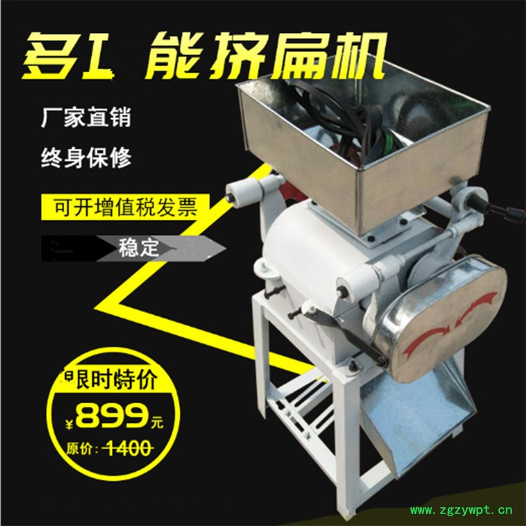 结构简单,操作方便,体积小,主要通过拉丝对辊把豆类或脱皮后的麦类米类粮食挤压成扁,用于熬粥或煲汤,易于熟化,便于消化吸收,批量加工进入超市十分受欢迎。