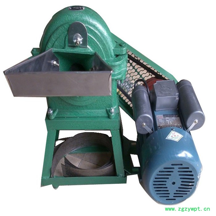 泰丰牌齿盘式粉碎机-该齿爪式粉碎机,在机座上装有主机,主机包括有机体以及和机体连接在一起的活门组成粉碎室,机体内装有轴承以及由轴承支承的主轴,主轴伸出机体外部的一端装有皮带轮,在粉碎室内的一端装有转子,轴承两端装有内端盖和外端盖,转子上紧固有数圈钢齿,与固定在活门里的齿盘交错配置,活门上端有入料口,入料口上面装有盛料斗。