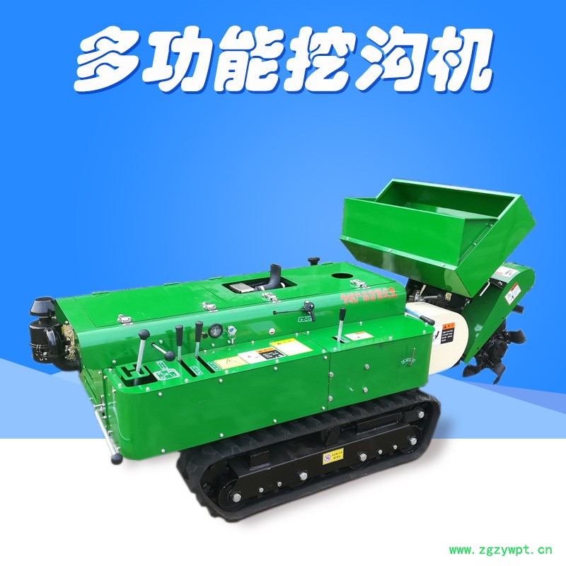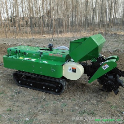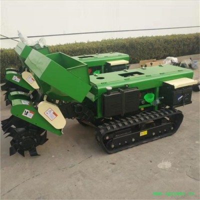 多功能履带式开沟施肥机安装上不同的配件可以进行单独旋耕、回填、单独开沟、施肥、也可混合搭配使用。产品结实耐用,性能优越,操作方便.耐用:机身加厚,密,履带式行走,可进行原地转向。刀具都是加厚75号猛钢锻造,非常耐磨耐用,工作效率高。