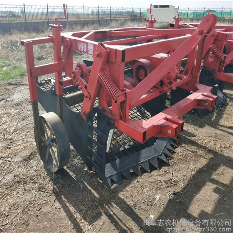 该机是与60马力以上的大、中型轮式拖拉机配套的悬挂式薯类作物收获机具,适应于沙质土壤、中等粘土质栽植的马铃薯、红薯、花生及生地、丹参、远志、板蓝根、柴胡、黄姜、伏子、黄芹、川地龙等中药材的机械收获作业。
