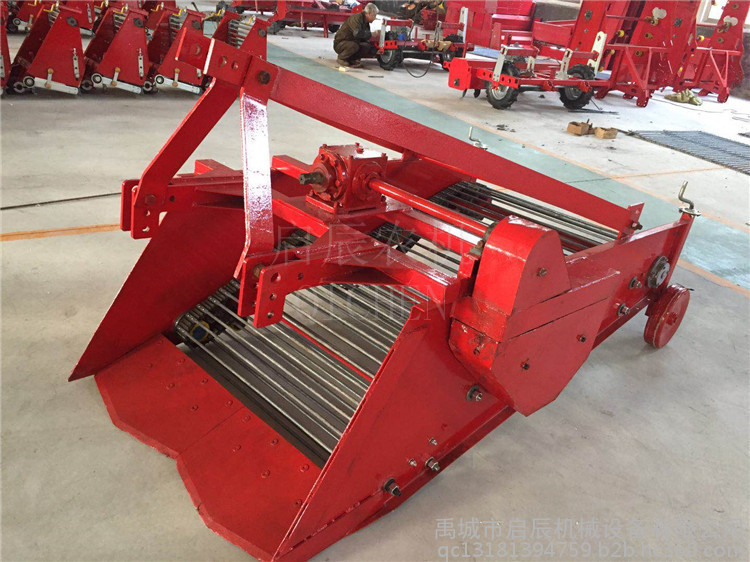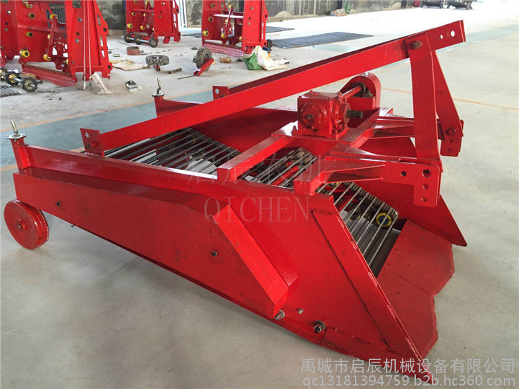 该机配有专用收获机传送带,大大增加了使用寿命,专用的铸铁齿轮箱,使机器运行更加平稳。该机配有双层振动筛土装置及前轮拨动轮装置,分离效果好,适应性强。收净率高,破坏率低,成本回收快。
