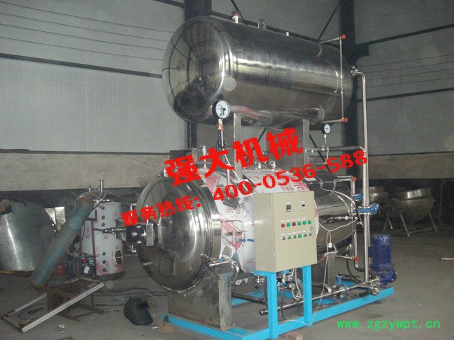 杀菌锅由锅体、锅盖、开启装置、锁紧楔块、安全联锁装置、轨道、灭菌筐、蒸汽喷管及若干管口等组成。锅盖密封采用充气式硅橡胶耐温密封圈,密封可靠,使用寿命长。具有受热面积大,热效率高、加热均匀、液料沸腾时间短、加热温度容易控制等特点。杀菌锅主要用于食品行业、医药等各个领域,杀菌锅质量好坏直接关系到产品的质量甚至使用者的生命,所以挑选设备时要谨慎!产品说明:卧式杀菌锅是属于静置式、间歇式杀菌设备,以通入饱和蒸汽为加热介质对产品进行高温灭菌,用补充压缩空气来实施反压操作,再注入冷水(温水)直接进行强制冷却的杀菌设备。其锅盖锁紧形式是采用自锁楔块啮合方法,开闭起动方便。适用于罐头、饮料等产品采用马口铁罐、玻璃瓶包装及耐蒸煮软包装的实罐产品杀菌处理,以达到在保质期内“商品无菌”的要求。适用范围: 茶餐厅设备、蛋糕房设备、面包房设备、咖啡店设备、饮品店设备、中餐店设备、西餐店设备、酒厂设备、调料加工厂设备、果蔬加工厂设备、冷冻食品厂设备、肉制品加工厂设备、休闲食品厂设备、其他联系人经理 联系电话:15006465383 13506478756 QQ:1693359187 631411951