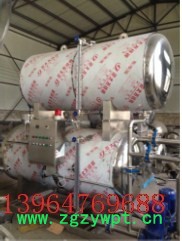 双层水浴式高温高压调理杀菌釜适用范围全功能杀菌釜适用于各类耐高温包装材料:1、塑料容器:PP瓶、HDPE瓶。2、软袋包装:铝箔袋、透明袋、真空袋、高温蒸煮袋等。双层水浴式高温高压调理杀菌釜设备特点:1、节约能源。在杀菌过程中使用的工作介质可循环使用,节省了能源、时间及人力、物力的消耗,降低了生产成本。2、高温短时间灭菌 采用双罐热水循环进行杀菌,事先将热水罐内的水加热到灭菌所要求的温度,从而缩短了灭菌时间,提高了工作效率。3、均一的水流交换方式,温度均一,无死角采用国际先进技术,利用热水循环、浸泡式杀菌,在杀菌过程中,杀菌罐内的循环水呈上、下不断的切换,保证了杀菌罐内从升温、保温到降温,任意点的热分布均一,有效杜绝了杀菌过程中出现的死角现象,使产品的保质期更加稳定和长久。4、杀菌罐内温度在杀菌过程中所有阶段始终保持稳定,保证了F值的合格率。5、全自动控制系统。整个灭菌工艺流程全部由电脑PLC控制,一次性完成,无需人工操作。采用图表平板,利用屏幕进行触摸控制,所有时段均由模拟感应器和自动阀控制,可以从单一杀菌工艺切换成多阶段杀菌工艺。压力和温度呈数字化显示,可将适用于任何产品的各种压力模式和温模式预先编制成程序输入计算机中。6、测量F值的功能。鼎泰盛公司生产的每台杀菌釜上均可配置F值测量仪,该测量仪具备测量值的功能,F值软件每隔3秒进行一次F值计算。所有灭菌数据,包括灭菌条件、F值、时间-温度曲线、时间-压力曲线等均可通过数据处理软件处理后予以保存或打印,以便于生产管理。7、模拟温度控制系统,可设定多阶段加热机制根据不同食品对灭菌条件的要求,随时设定不同的升温和冷却程序,可利用多阶段的加热的杀菌方式,使食品承受的热量限制到**小,以近可能**的保存其色、香、味,使每一种食品均可在**状态下进行调理灭菌。杀菌温度**到±0.3℃,可以避免产品蒸煮过度或灭菌不彻底的现象。8、电脑内可存储100个杀菌公式,以便选择使用。