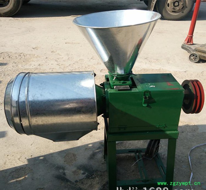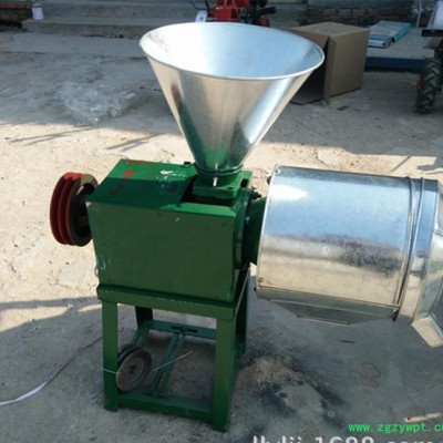本机结构主要有由进料口、锥形磨和分离系统组成,磨面机的内、外磨头下端的配合面呈圆锥形,磨头的上方由两个向心球轴承作为两个主支承点,内、外磨头下端的圆柱作为旋转辅助支承点,并由内磨头的轴向移动调整内、外磨头的间隙。磨碎的粮食直接从磨头间隙经罗架落到罗底上,由可调整间隙的刷子与罗底将面粉与麸子(种皮)分离开。原粮磨面机集粉碎、磨面、磨糊,磨浆、饲料加工于一体,能将小麦、大米、小米、玉米、黄豆、芝麻、大豆、高梁、青稞等粮食类,以及其它部份化工原料,软质石,木粒物料等干磨制成粉,加水和磨成浆(糊),物料加工粗细可以调整,适于农村和小型化粮食、饲料加工作