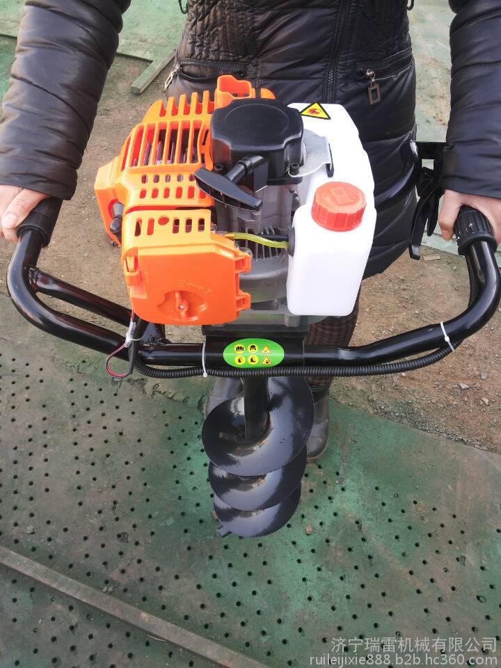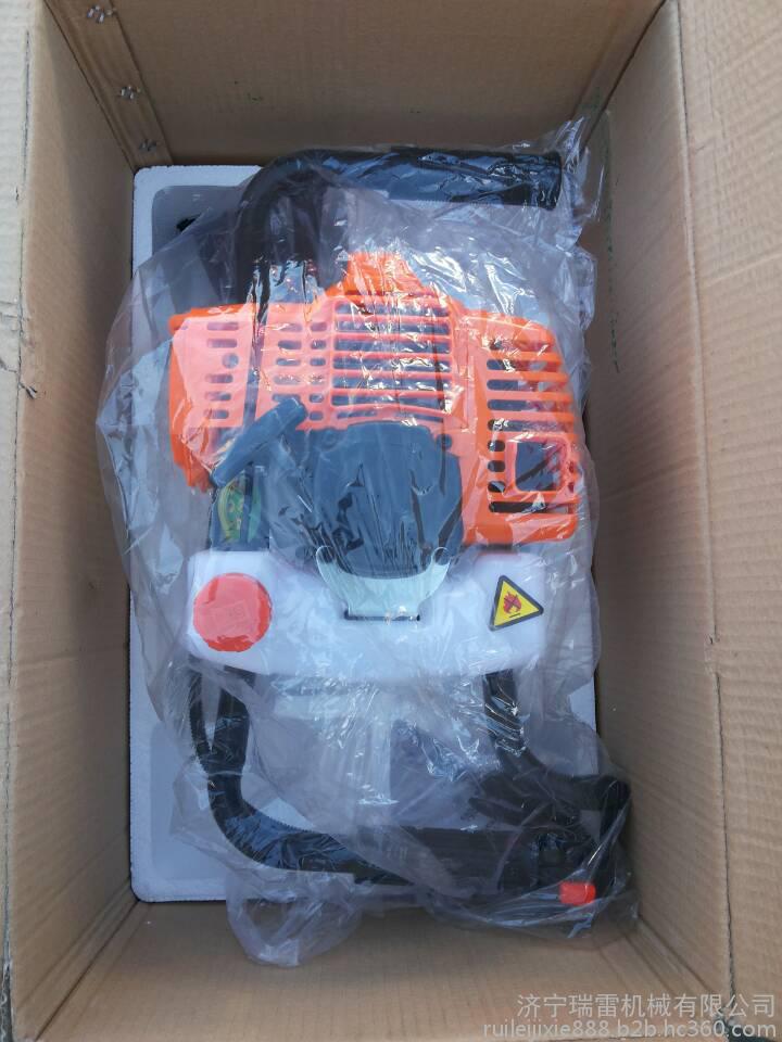 1.手提式植树挖坑机由小型通用汽油机,超越离合器,高减速比传动箱及特殊设计的钻具组成.适合在土地,冻土,冰层上打孔.广泛用于园林,种植,植树,物探,道路建设等领域.