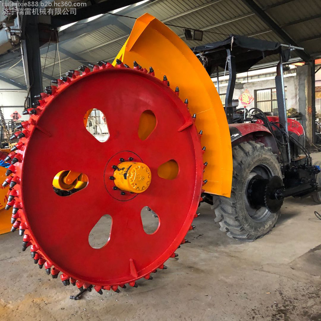 马路牙子大型盘式开沟机主要采用旋转的铣抛盘作为主要工作部件,利用拖拉机的动力输出轴将动力传递给铣抛盘的齿轮轴,齿轮轴带动铣抛盘高速旋转,从而实现开沟作业。