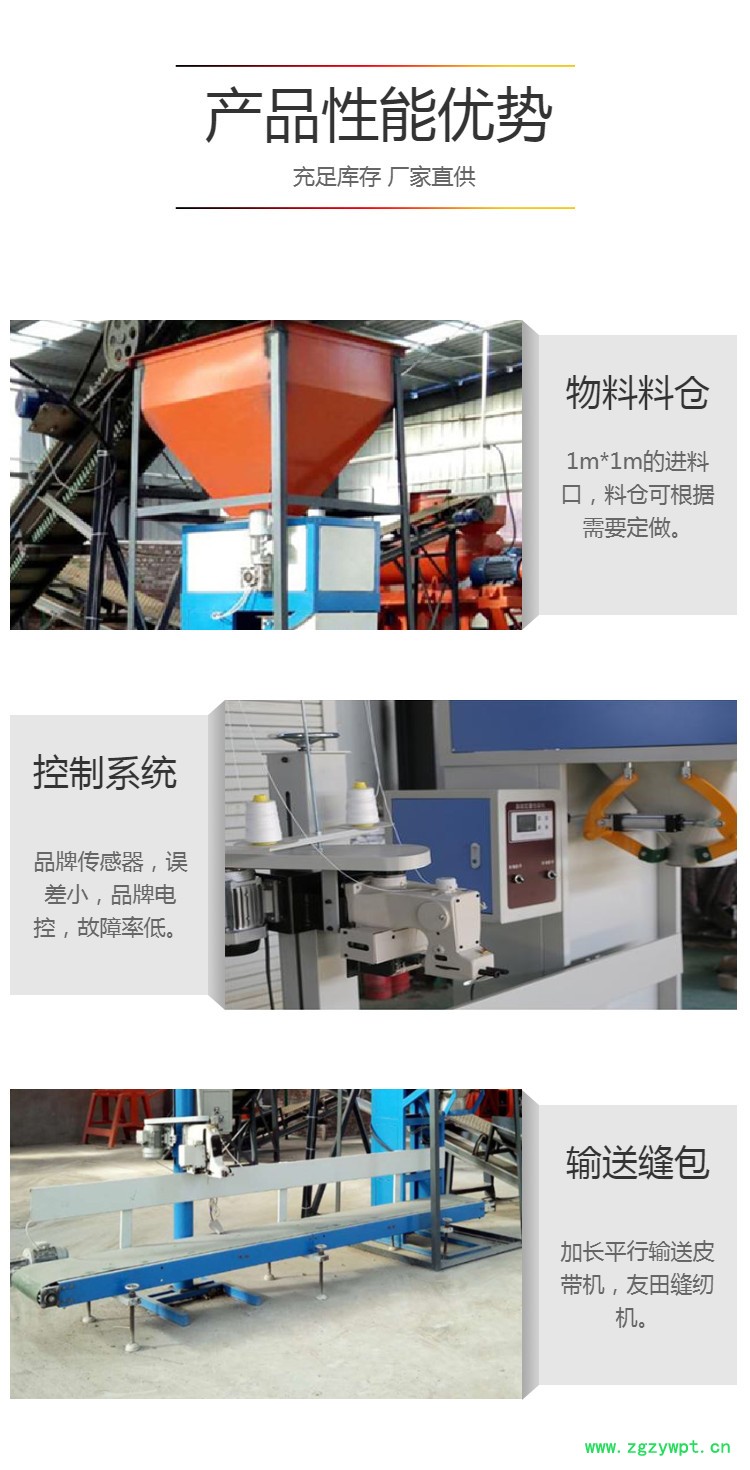 机器本身带有行走轮,可以随意更换工作场所,采用先进的仪表测量和PLC控制技术,产品称量精度高、包装速度快、运行稳定、可靠性高、操作简便。 物料通过气动蝶阀进入缓冲料仓,通过气动弧型门进行大,中,小三级给料。进入称量斗,物料达到设定值时由传感器发出信号,弧型门关闭,称量斗底部放料斗阀打开,物料进入料袋,夹袋器打开,料袋通过输送机送至缝包机单元。