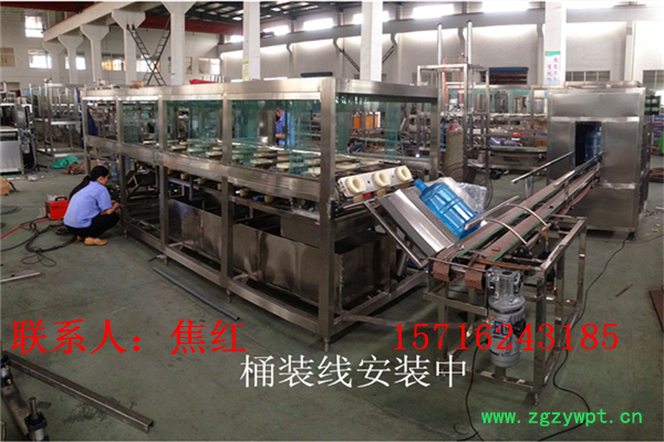 大桶水生产线成套设备 大桶水灌装设备 五加仑纯净水灌装机适用于生产5加仑(18.9L)桶装纯净水、矿泉水、山泉水、矿物质水。桶装矿泉水灌装设备包括消毒、冲洗、灌装、挂盖、压盖等5大功能。除桶装矿泉水灌装设备外,桶装矿泉水生产线还包括自动拔盖机、自动内刷机、自动外刷机、自动上桶装置、进/出桶输送、自动上盖机、桶盖消毒机、灯检、自动套膜机、蒸汽缩膜机、提桶套袋机、码垛机。