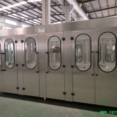 本系列设备用于绿茶,红茶,乌龙茶以及果汁饮料等产品的热灌装生产。该机集冲瓶,灌装,封口为一体。设计科学合理,造型美观,操作维修方便,自动化程度高,是热灌装饮品的生产设备。系列设备是本公司引进国外的饮料灌装设备技术的基础上,结合国内的生产经验研发的整机采用卡瓶颈悬挂运动工态设计,运用重力式定液面灌装原理,灌装速度快、液面控制稳、无滴漏的现象,采用磁力扭矩式拧盖头,实现抓盖、拧盖功能。结合水平回转式气力理盖器,具有不损坏瓶盖表面,料斗内缺盖发信号自动补充盖功能,与水接触的零件均采用SUS304不锈钢材料,主要电器元件采用日本三菱、法国斯奈德公司的产品,气动元件采用意大利康茂胜公司、日本SMC公司等国际厂家产品,适合用于聚酯瓶装各种果汁、果酒、矿泉水、纯净水等不含气饮料的生产,在一机上实现冲瓶、灌装、封盖。