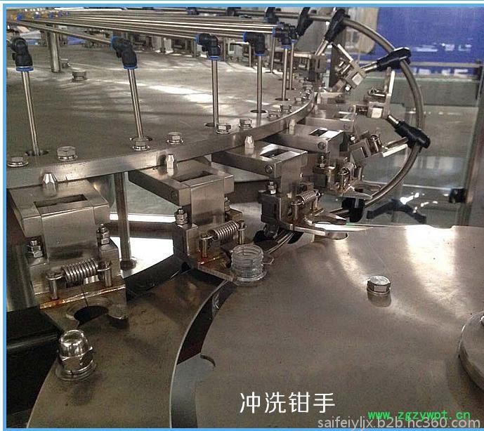 本系列设备集洗、灌、封为一体,适用于各种果汁饮料、茶饮料的热灌装生产,同时更换少量的零部件,便可用于纯净水、矿泉水的灌装。产量3000-36000瓶/小时,可供用户选择。采用先进的微负压重力式灌装原理,灌装快、稳、准,设有完善的物料回流系统,也可实现回流时独立回气,不与物料接触,减少物料二次污染及氧化。本机能满足95℃以下热灌装技术要求,灌装阀及物料进出管路无卫生死角,同时配有CIP自清洗接口,封盖前设有对瓶口RO水冲洗装置,以确保瓶口无发霉现象。采用磁力扭矩式拧盖头,实现抓盖、拧盖功能。拧盖力矩无级可调,具有恒力矩旋封塑盖功能。整机采用人机界面触摸屏控制、PLC电脑程序控制、变频器控制等先进技术。具有供盖系统自动控制、灌装温度自动检测、物料高温报警、低温停机并自动回流、无瓶不加盖、缺瓶等待、缺盖停机等功能。