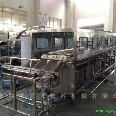 全自动大桶水生产线设备是灌装纯净水的专用设备,也可用于蒸馏水、矿泉水和其他无菌液体的灌装。该设备集自动外刷桶、自动上瓶机构、自动洗瓶消毒、自动灌装、自动套盖、自动压盖和灯检、热缩膜、成品送出为一体,使用的原材料符合食品行业和其他行业要求。该设备采用AC380V/50HZ交流电源,采用松下PLC可编程控制器控制系统,通过高清晰触摸屏编辑程序自动运行,动力传动采用减速电机与气动控制系统,性能可靠、操作简便、维护简单的。整个洗瓶、灌装、套盖和压盖全过程均在封闭隧道内进行,有效地防止纯净水在灌装过程中可能发生的二次污染,完全符合卫生标准。本机机体全部采用**不锈钢材料,其它部分也均采用无毒、耐用的组合材料,电气、气动系统采用进口元件,因此设备故障率低,可靠性高。