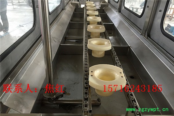 全自动大桶水生产线设备: 5加仑灌装机采用PLC控制**定位自动完成,全套设备采用高强度不锈钢材料、不锈钢板、精密氩弧焊接、变型小、焊纹美观;传动件为不锈钢结构,保证了机构在各种环境下正常运行;非金属件采用PP塑料等无毒高耐磨材料精心加工而成;传动电机、增压泵选用国内出口型系列不锈钢产品、电气组件采用进口系列或国内**系列精装而成,使性能更加稳定可靠。本设备由冲洗、灌装、压盖一体主机组成,适用于3-5加仑桶装纯净水的灌装生产。冲洗过程分三道工序:碱性液态除污剂(内,外冲洗)消毒水(内、外冲洗)纯净水(内、外冲洗)。碱性水、消毒水可循环使用。整个冲洗灌装封盖过程采用了PC可编程自动电脑控制系统,本设备有连锁、信号,自测等安全装置。 特点:整机由**不锈钢制成,结构合理、操作方便、动作准确是目前桶装饮用水生产线的理想设备。