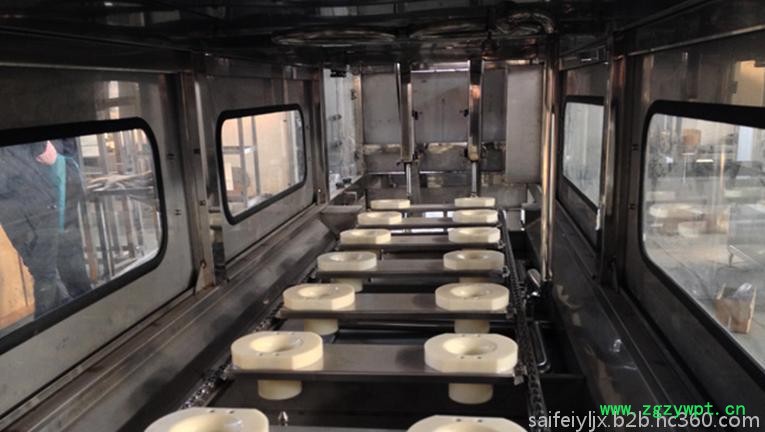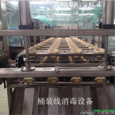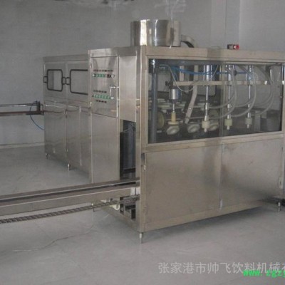 本设备由冲洗,滴干,灌装和压盖一体主机组合成,适用于3-5加仑桶装饮用水的灌装生产。冲洗过程分三道工序;碱性液态除污剂内,外冲洗→消毒水内,外冲洗→纯净水内,外冲洗。碱性水,消毒水可循环使用。整个冲洗灌装封盖过程采用了PLC电脑控制,本设备有连锁,信号,自测等安全装置。整机由**不锈钢制成,符合食品卫生要求,结构合理,操作方便,动作准确是目前桶装饮用水生产线的理想设备。