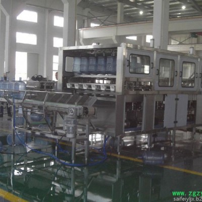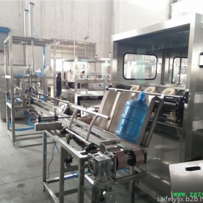 本设备由冲洗,滴干,灌装和压盖一体主机组合成,适用于3-5加仑桶装饮用水的灌装生产。冲洗过程分三道工序;碱性液态除污剂内,外冲洗→消毒水内,外冲洗→纯净水内,外冲洗。碱性水,消毒水可循环使用。整个冲洗灌装封盖过程采用了PLC电脑控制,本设备有连锁,信号,自测等安全装置。整机由**不锈钢制成,符合食品卫生要求,结构合理,操作方便,动作准确是目前桶装饮用水生产线的理想设备。