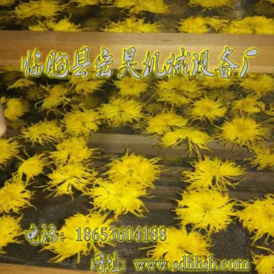 三、加温烘干法将需要处理的鲜菊花放置烤房、烘房的竹帘上或铺于烘筛、烘盘、烘干筐置于火炕,厚度3-5厘米,在60℃左右温度下烘烤,半干时翻动1次,九成干时取出晒至全干即为成品。这种方法烘干速度快,菊花质量好,出干率高。烘房可以有多种用途,除了烘菊花外,可以烘制核桃、蚕茧等多种物料。以前菊花通常放置于竹制盘、竹材金属混合的烘干托盘上,现在有金属格子、金属丝网烘盘、金属烘干托金属筐可以选择用来盛放菊花。因其轻便、外形光洁无毛茬、耐锈蚀等特点而被浙江杭州、安徽、河南洛阳很多菊业公司、生产菊花的农户青睐,用来取代竹帘、木质筐等老式的烘干筐、烘筛。