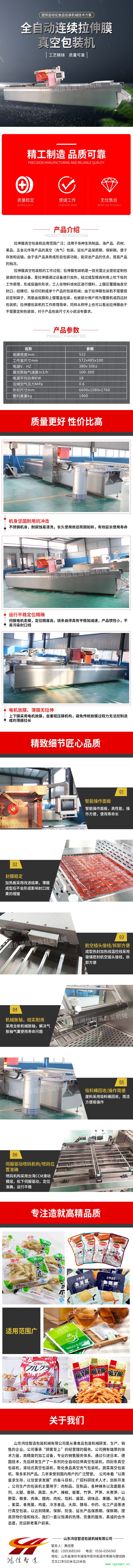 公司生产的包装机主要用于:肉制品、豆制品,各种辣条以及面筋系列,火腿、香肠、蔬菜、水产、辣椒、板栗、竹笋、芦笋、水煮笋、山野菜、粮食、肉串、腊肉、肉松、馅料、酱菜、调味品、果脯、海产品、紫菜、食用菌、鸡蛋、冷冻食品、大蒜、酵母、中药、化工产品等进行真空包装,以达到隔氧、保鲜、防虫、延长产品保质期、保鲜期、提高货物价值和档次。我们一直以饱满的热情、完善的服务、真诚的合作态度,欢迎新老客户前来。