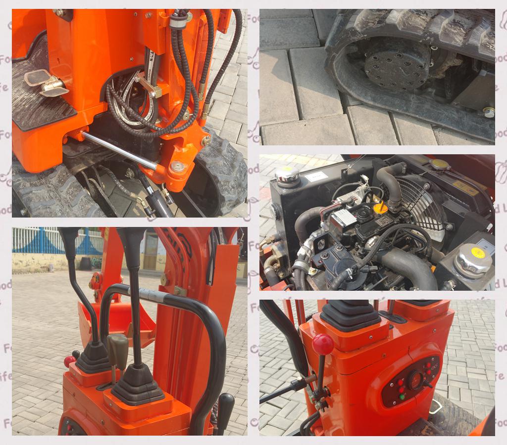 原装进口洋马发动机,泵是齿轮泵,原装进口意大利纳博特斯克多路阀,行走马达是布雷维尼,减速机是康迈尔,都是意大利原装进口,带侧摆及破碎管路,整机重量不足900公斤,宽度是82公分,适合于室内施工和园林绿化。