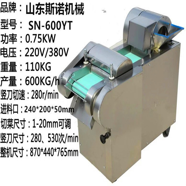 本机是模拟手工切菜原理,采用三级变速适应1--25mm切丝需要。离心式切片机构完成各种硬菜切片,自动输送到竖刀下切丝或切块。适用于硬、软根、茎、叶类蔬菜和海带的加工,可切制片、块、丝、丁、菱形、曲线形多种花样。是蔬菜脱水、速冻、保鲜、腌渍等食品行业及厂矿、企业、学校、部队等单位的食堂及宾馆、饭店蔬菜加工的设备。切片切丝机采用不锈钢,具有外形美观,操作简单,调整轻松,维护方便, ,噪音小,多产量等特点,工作效率高,物料控制,切片厚度在1-3mm,切丝切段宽度在1-25mm,能不同程度的替代人工切片切丝切段,切出的产品整齐,厚薄均匀,质量远远过手工
