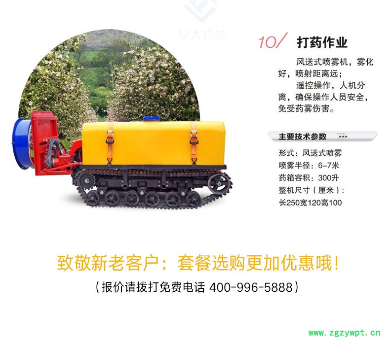 履带与地面接触面积大,牵引力大,6个轮子稳定性高,也是造坦克的技术人员帮设计生产的,更换农具方便快捷,遥控操作 人机分离 结构紧凑